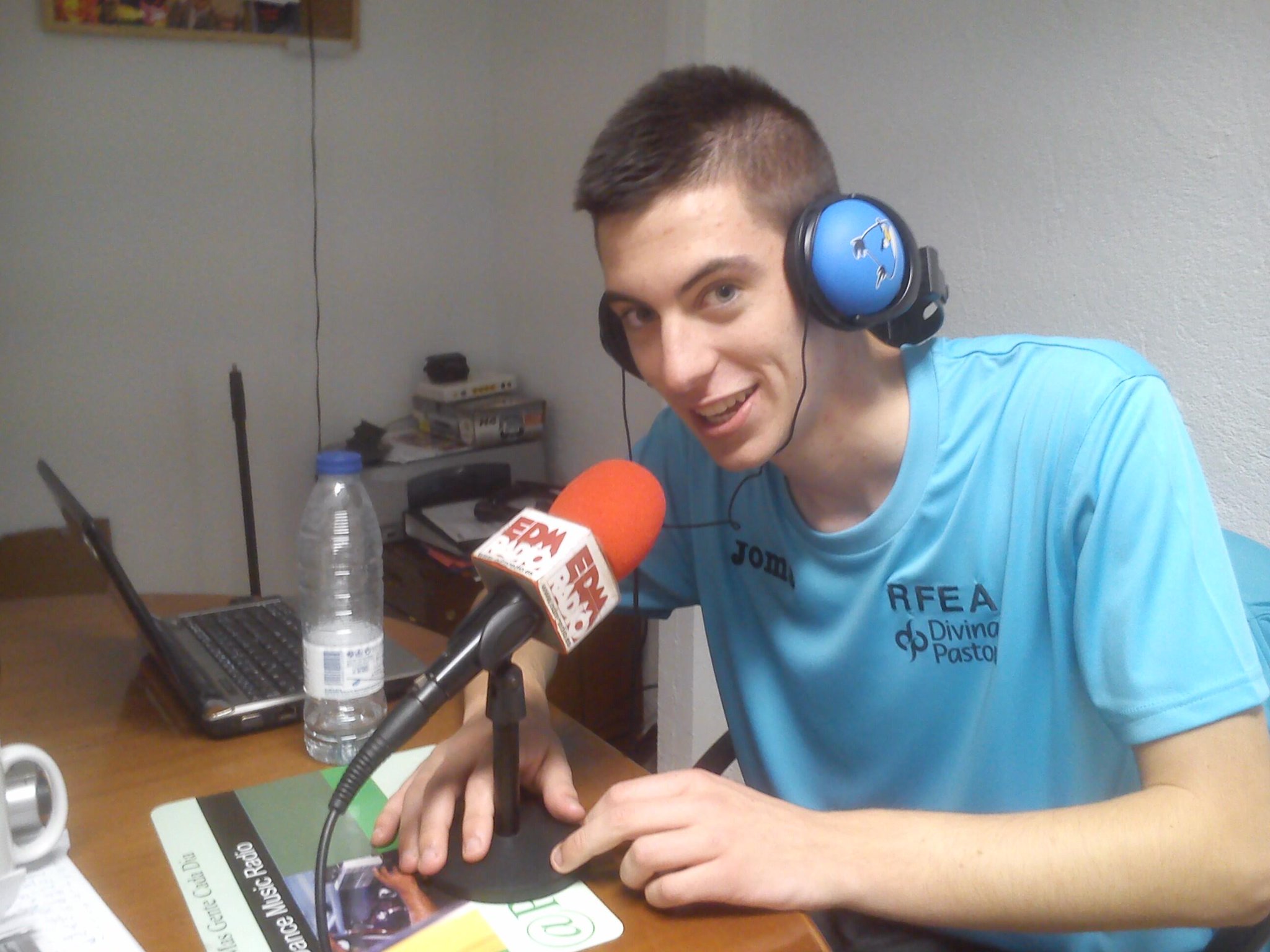 Dj Gonzalo M posando con la nueva decoración del estudio.