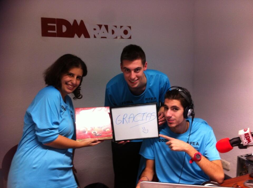 Nuestro equipo dando las gracias por los bombones que nos regaló Aria, ¡mmm, qué ricos!